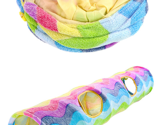 Collapsible Rainbow Cat Tunnel – Scratch-Resistant Play Tube with Multiple Entrances