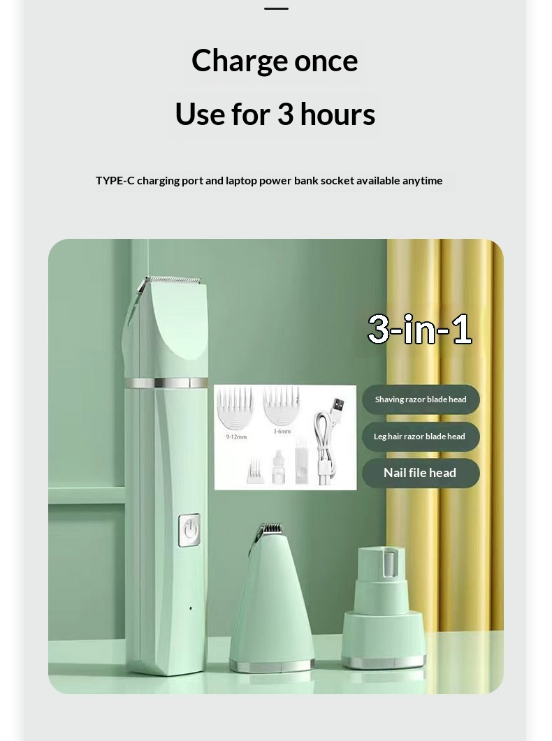 ★★★★★Keep your pet looking neat and tidy with this precision grooming tool, perfect for paws, face, underbelly, and delicate areas. Lightweight and easy to handle, it allows for detailed trimming without stressing your pet. The versatile multi-head design lets you choose between single, 2-in-1, 3-in-1, or 4-in-1 configurations, making grooming quick, safe, and professional at home.