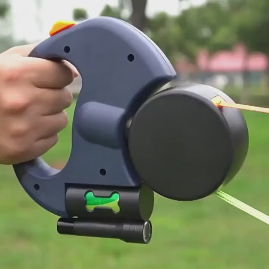 Dual-button control system allows each leash to extend and retract independently for better handling and customized control.
