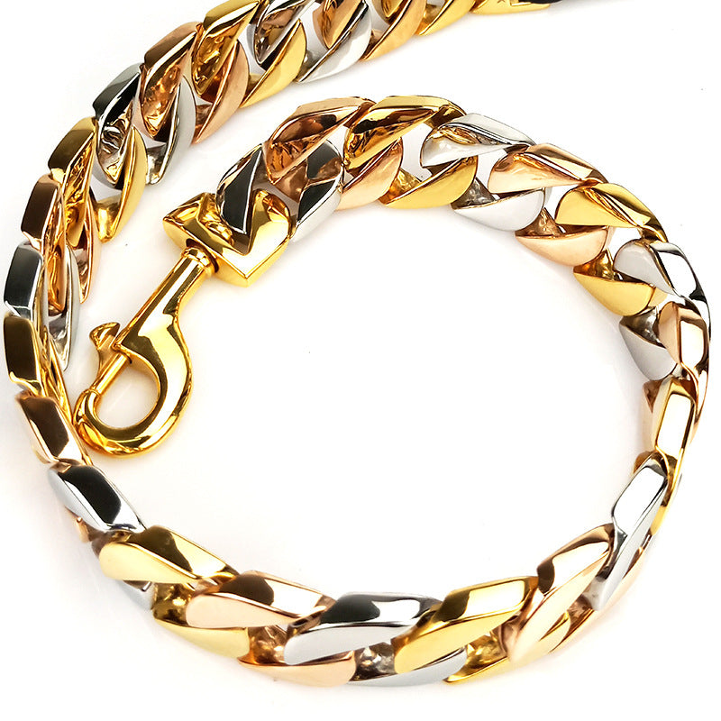 Stainless Steel Dog Chain Leash – Heavy Duty Metal Pet Lead, Rust-Resistant, 60CM (Gold, Rose Gold, Steel)