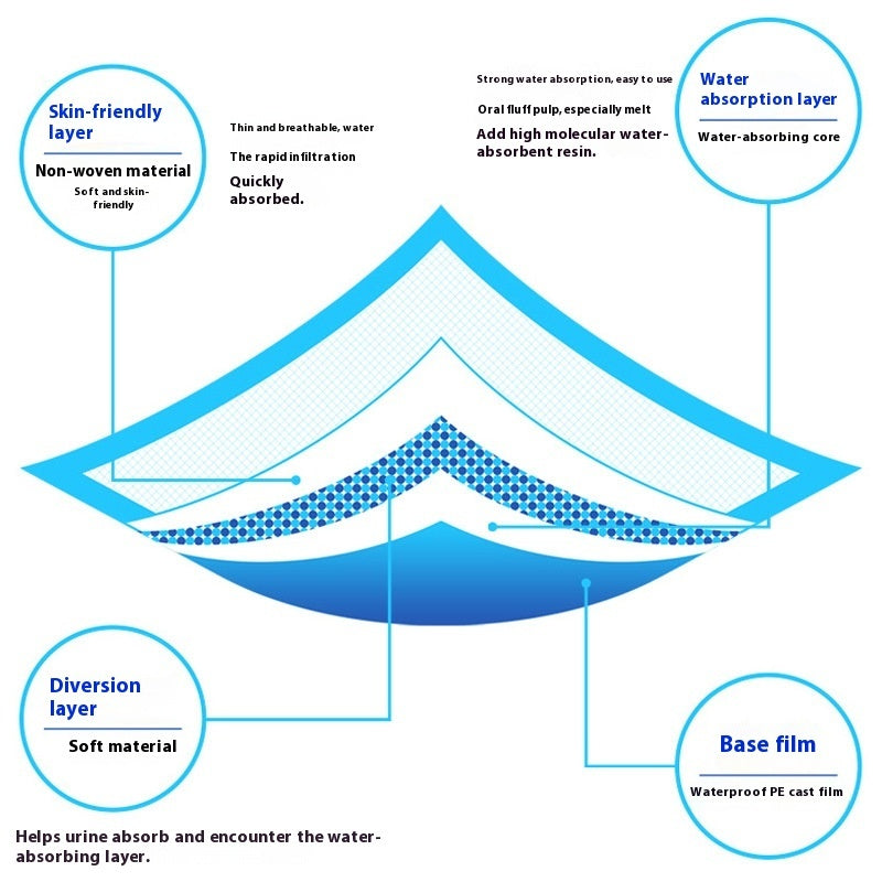 PE base film prevents leaks, ensuring your floors and furniture stay protected during potty training or incontinence care.
